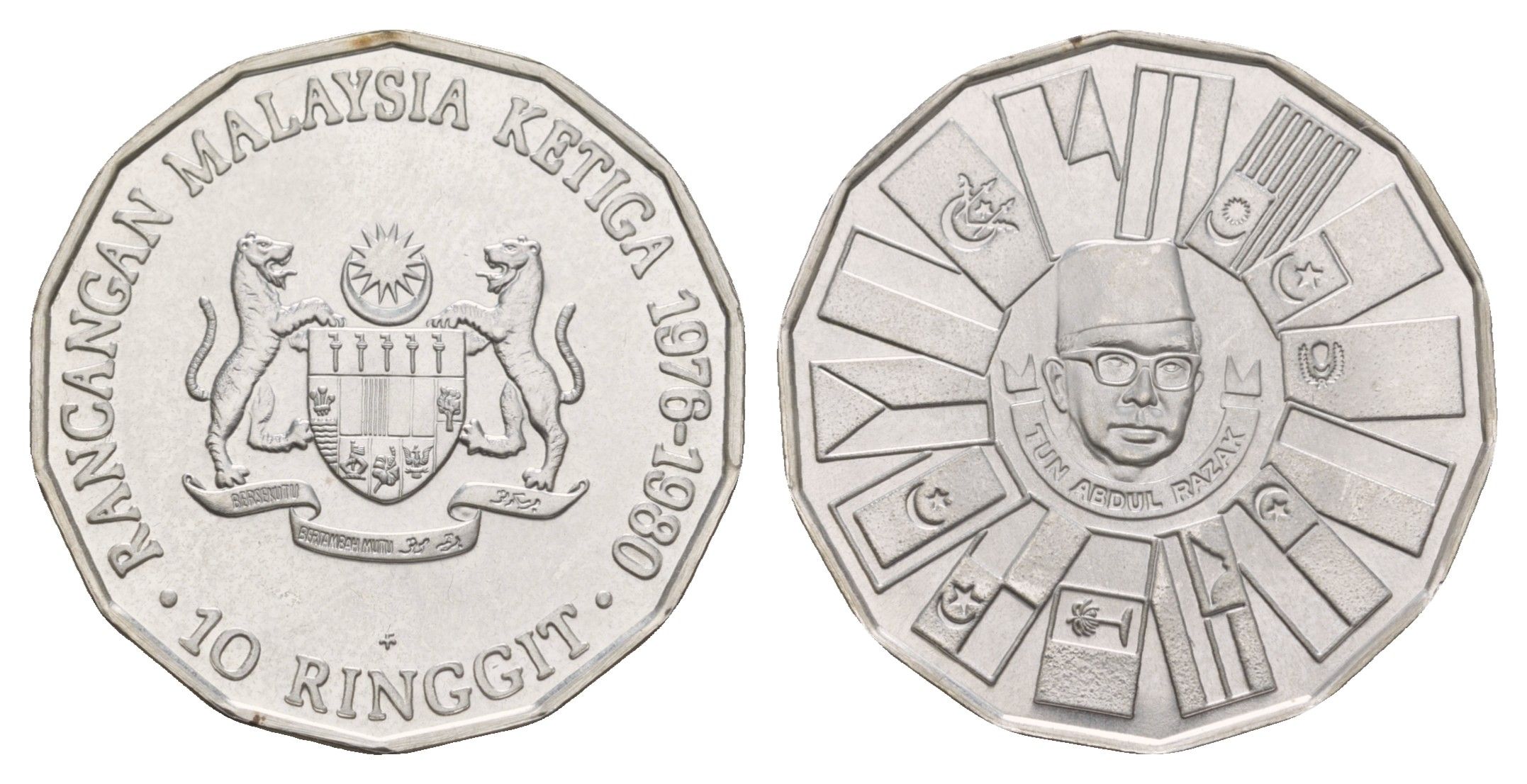 ----Малайзия 10 ринггит 1976 Третий малайзийский пятилетний план KM 17 серебро UNC 413-4123