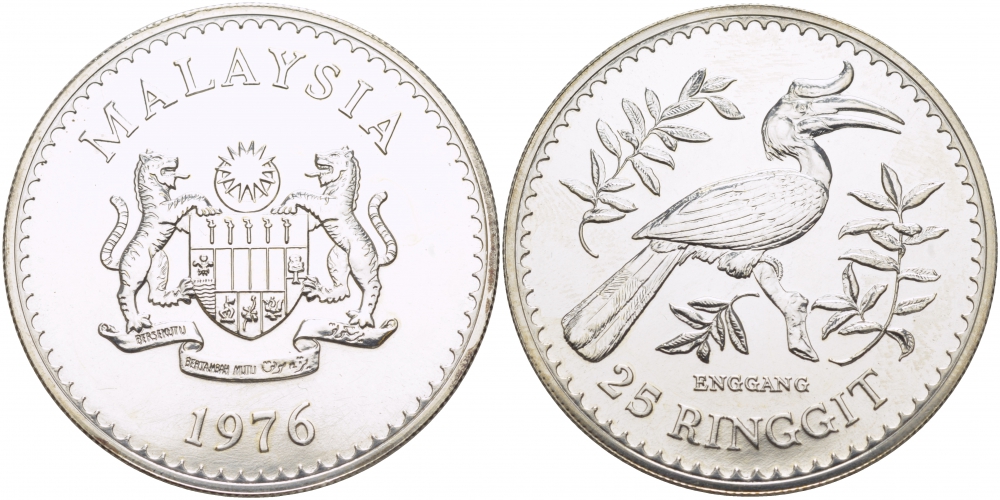Малайзия 25 ринггитов 1976 серия сохраним наш мир, малайский гомрай KM 20 серебро UNC 11-102-15
