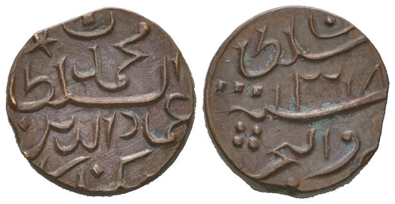 Мальдивы 1 ларин 1901 AH 1318 KM 38 бронза 1515-645