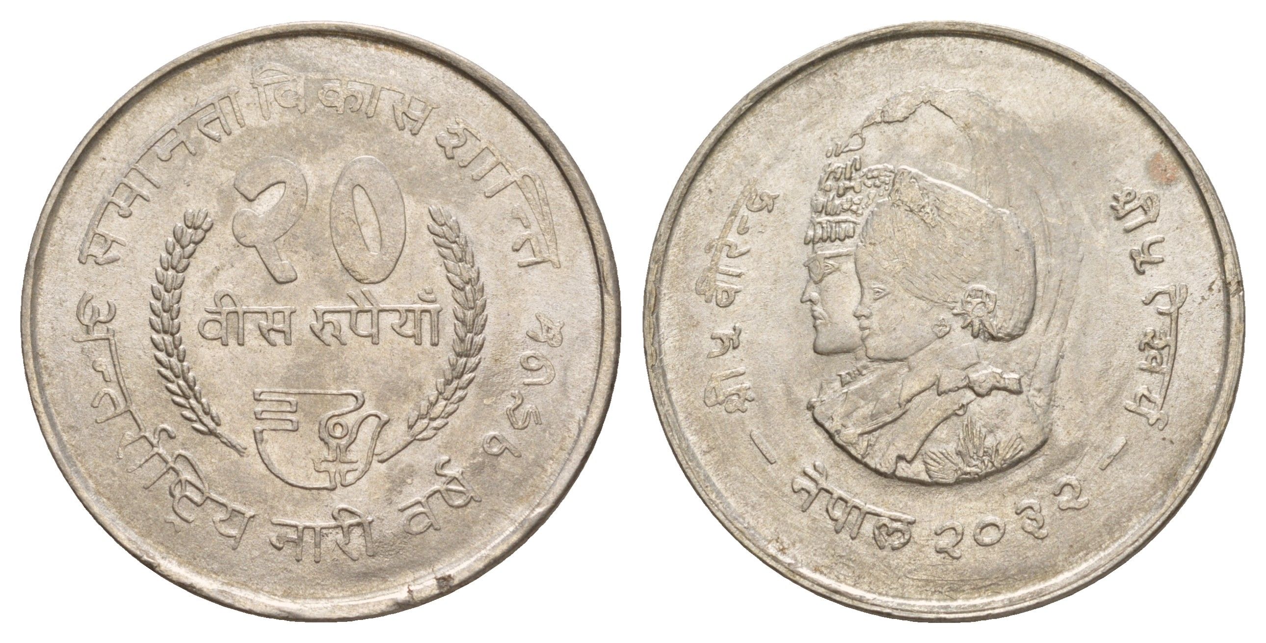 ----Непал 20 рупий 1975 BS 2032, ФАО - Международный год женщин KM 836 серебро UNC 3896-1034
