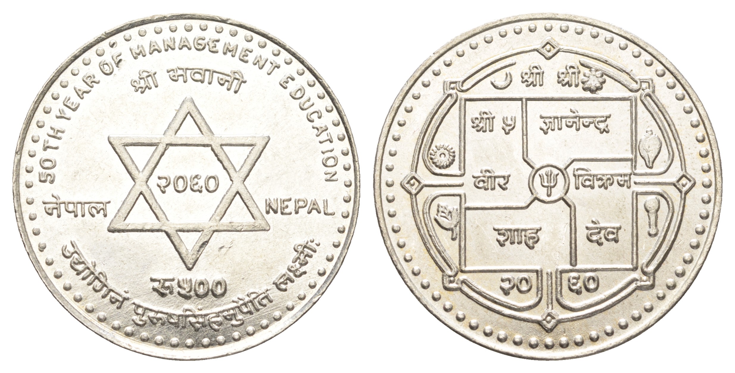 ----Непал 500 рупий 2003 VS2060, 50 лет образования в области менеджмента KM 1177 серебро UNC 5010-1824