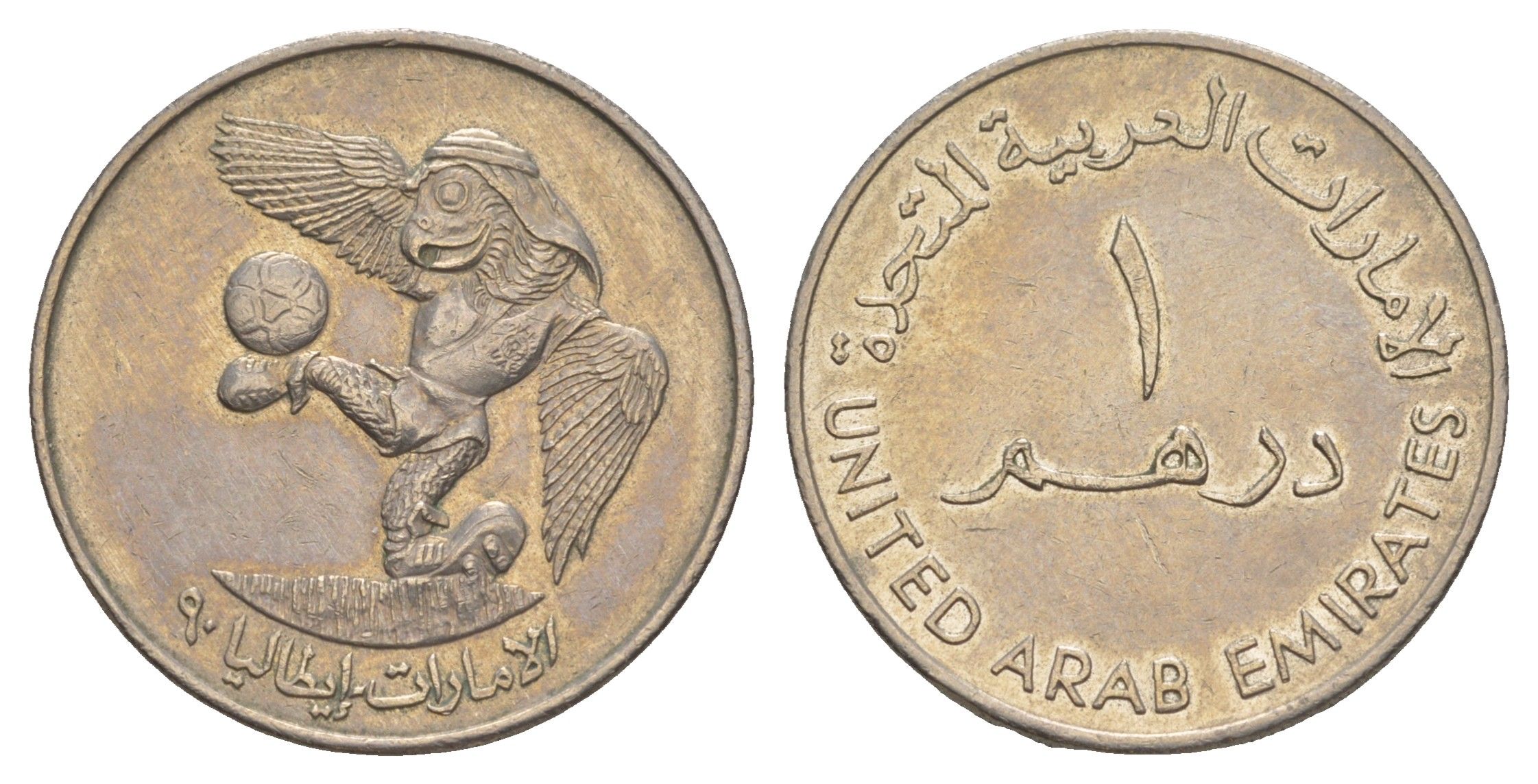 ОАЭ 1 дирхам 1990 Национальная сборная ОАЭ по футболу на Чемпионате мира 1990 г. KM 15 медно-никель 1521-714
