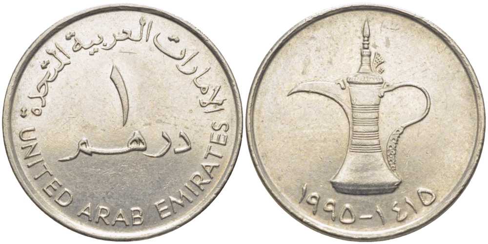 ОАЭ 1 дирхам 1995 AH 1415, кувшин KM 6.2 медно-никель 117-322