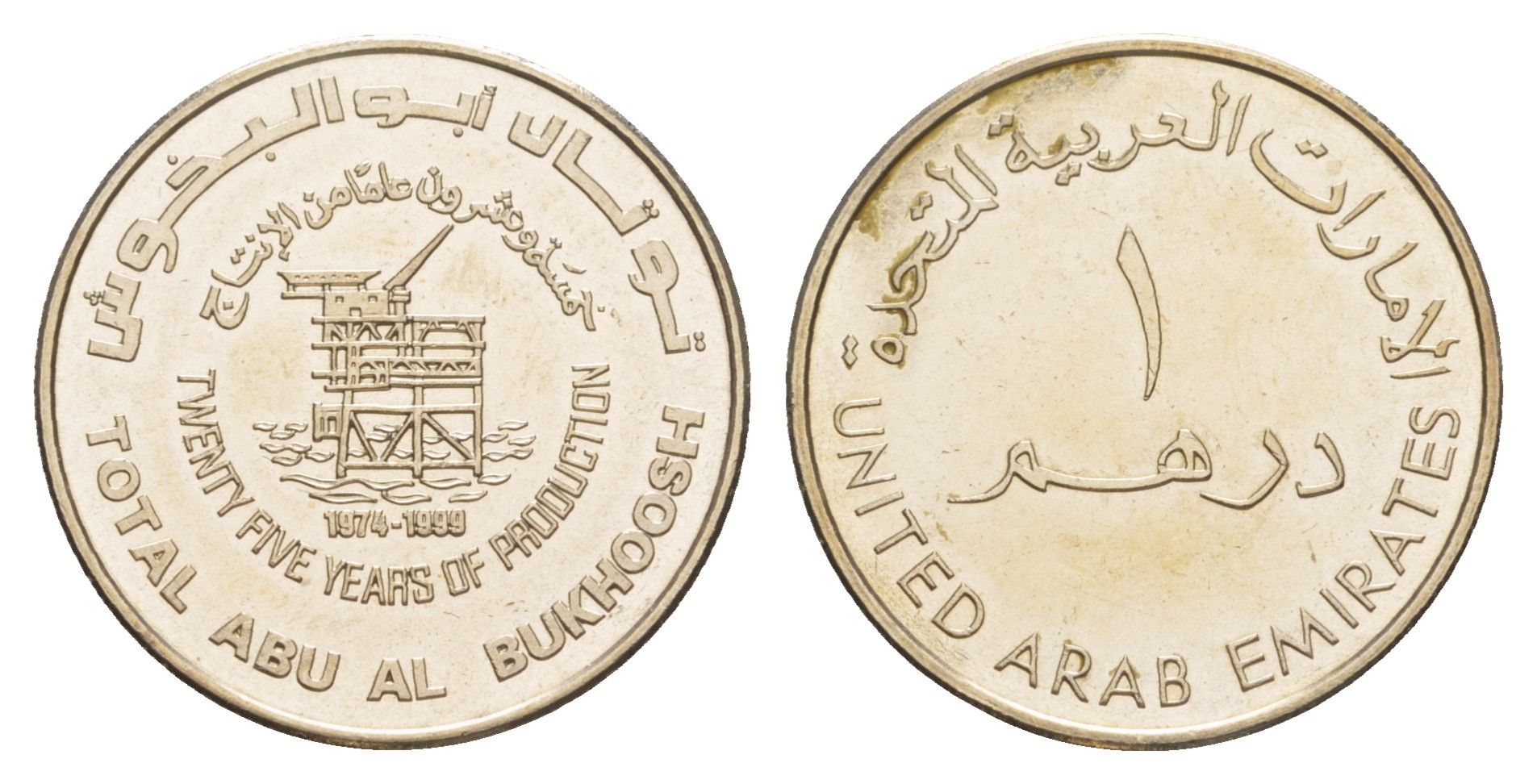ОАЭ 1 дирхам 1999 25 лет месторождению Абу Аль-Бухуш KM 40 медно-никель UNC 1521-1621