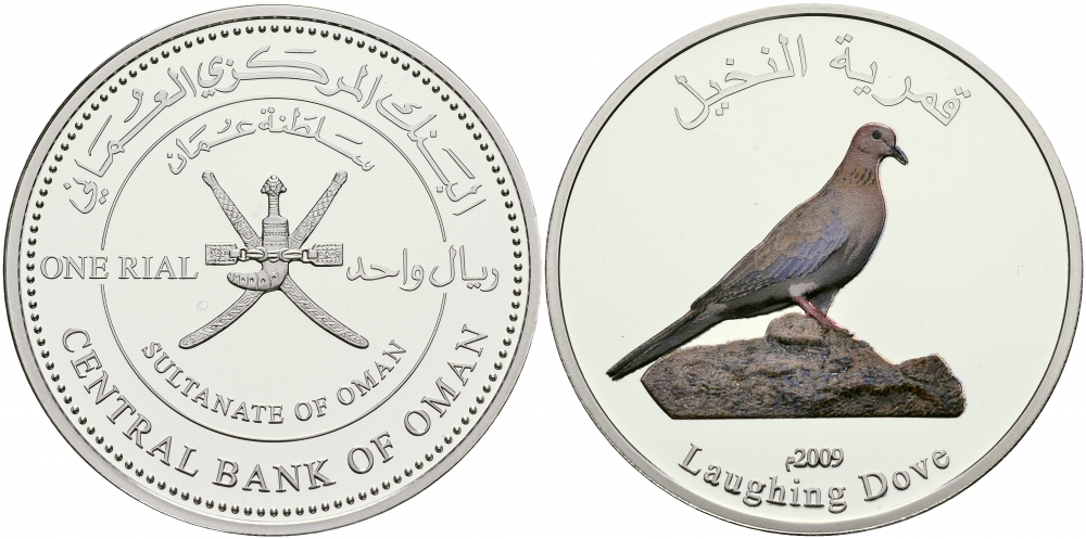 Оман 1 риал 2009 малая горлица, эмаль, тираж 500 экземпляров серебро PROOF 11-226-25