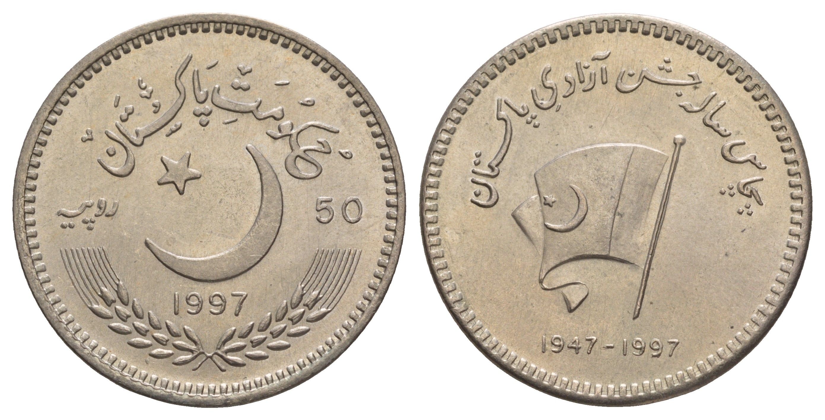 ----Пакистан 50 рупий 1997 50 лет Независимости Пакистана KM 60 медно-никель BU 4537-1131