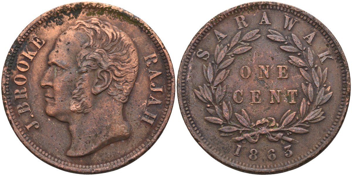 Саравак 1 цент 1863 раджа Джеймс Брук, Королевство Саравак (1846 - 1946) KM 3 медь 4590-621