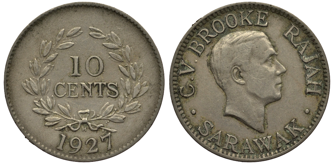 Саравак 10 центов 1927 Н, Третий Раджа Чарльз Вайнер Брук, Королевство Саравак (1846 - 1946) KM 16 медно-никель 4044-511