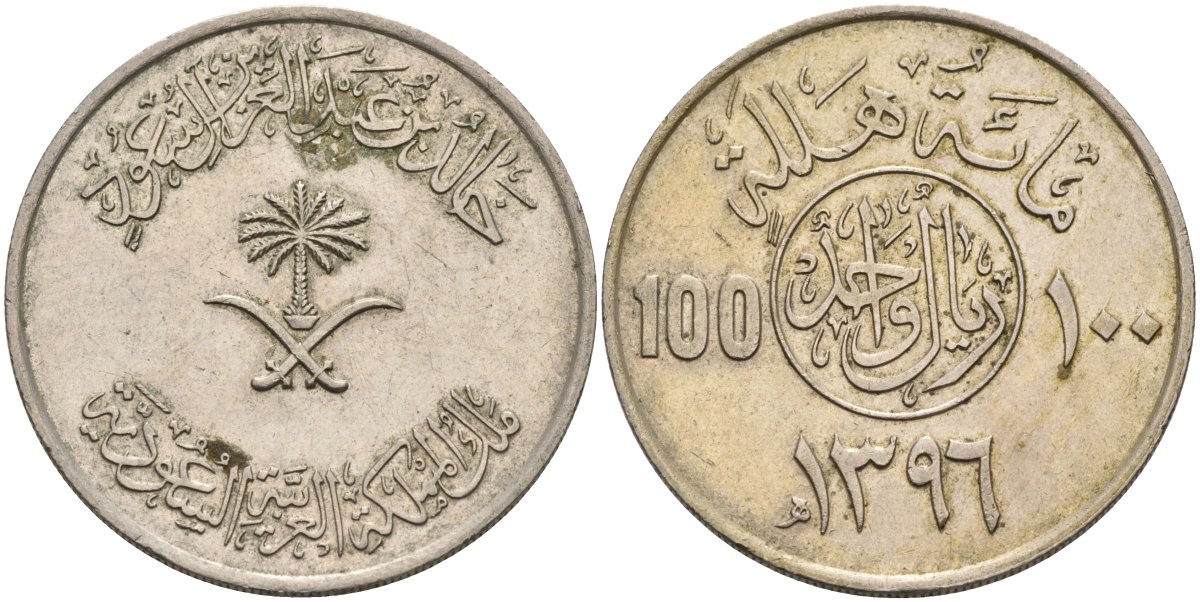 Саудовская Аравия 100 халала 1976 АН1397 KM 52 медно-никель 4574-416
