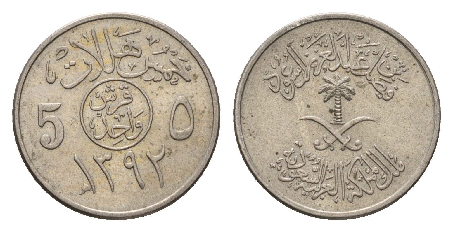 -Саудовская Аравия 5 халалов 1972 AH 1392 KM 45 медно-никель UNC 4674-634Нидерландская ИндияАфганистанТиморТурцияФилиппиныШри-Ланка (Цейлон)ЯпонияЮжная АравияАрменияАзербайджанСтрейтс-СетлментсБангладешБрунейКамбоджаОбъединенные Арабские ЭмиратыТайваньФранцузский ИндокитайСаравакУзбекистанЕдиная КореяКатарМолдавия (Молдова)КиргизияКазахстанГрузияТуркменияТибетТаджикистанЮжная КореяБахрейнБирма (Мьянма)БутанВьетнамГонконгИзраильИндияИндонезияИорданияИракИранЙеменКитайСеверная КореяТаиландКувейтЛаосЛиванМакаоМалайзияМальдивыМонголияНепалОманПакистанСингапурСирияДругие страны