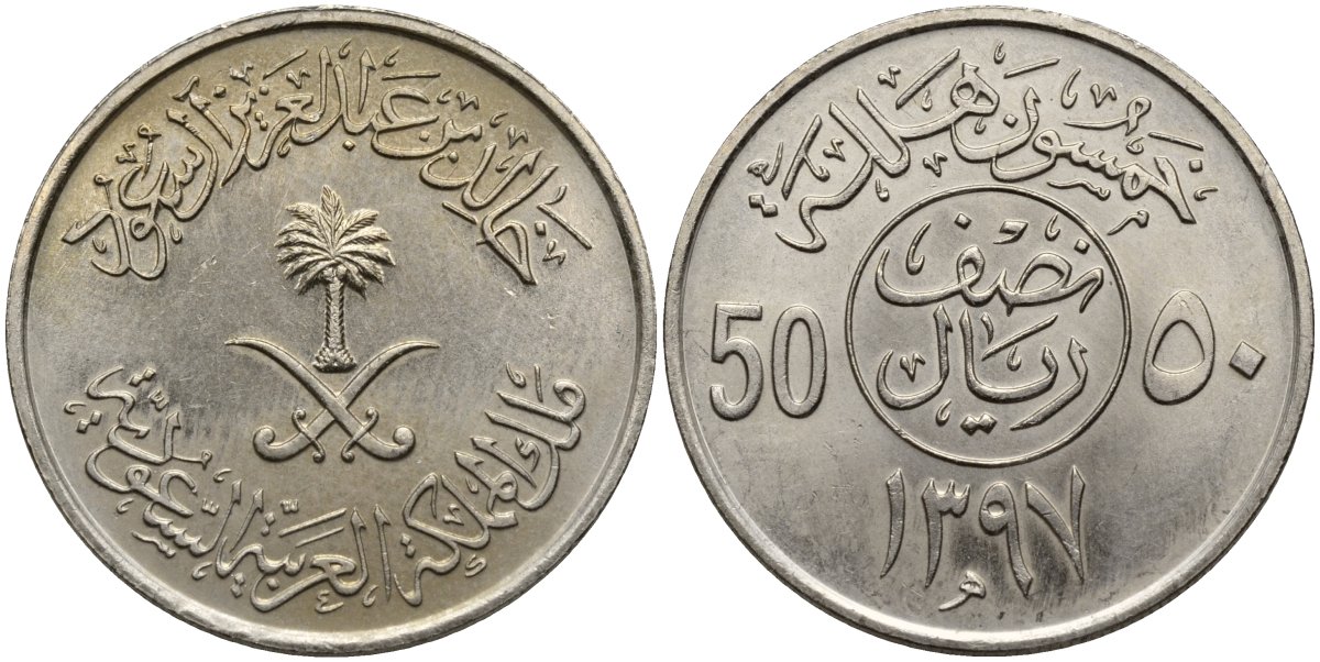 Саудовская Аравия 50 халала 1976 АН1397 KM 56 медно-никель 4175-445