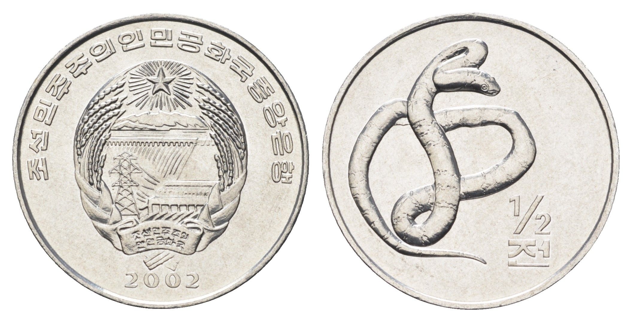 КНДР (Северная Корея) 1/2 чона 2002 мир животных - щитомордник KM 188 алюминий UNC 4662-352