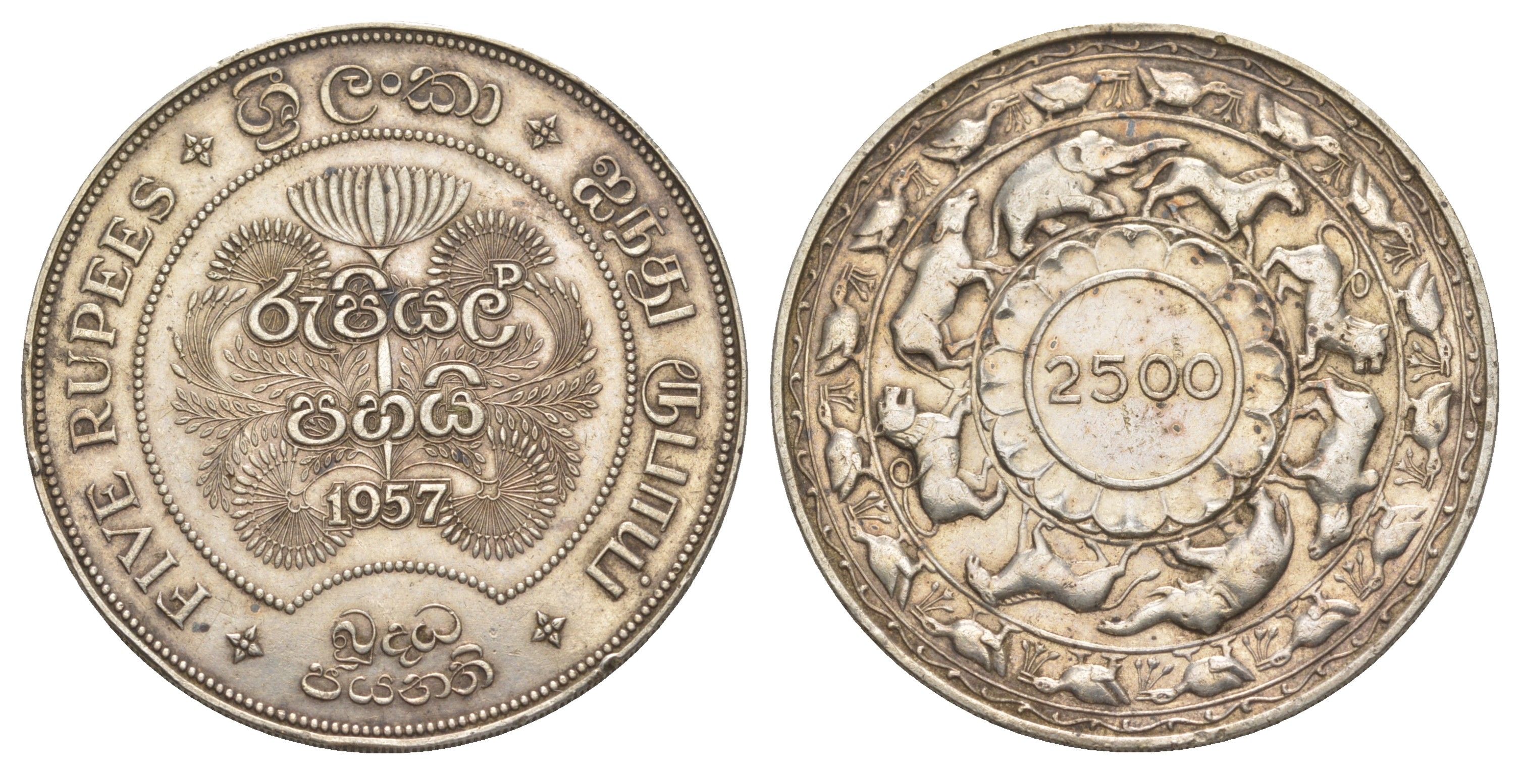 Цейлон 5 рупий 1957 2500 лет буддизму KM 126 серебро 1516-234