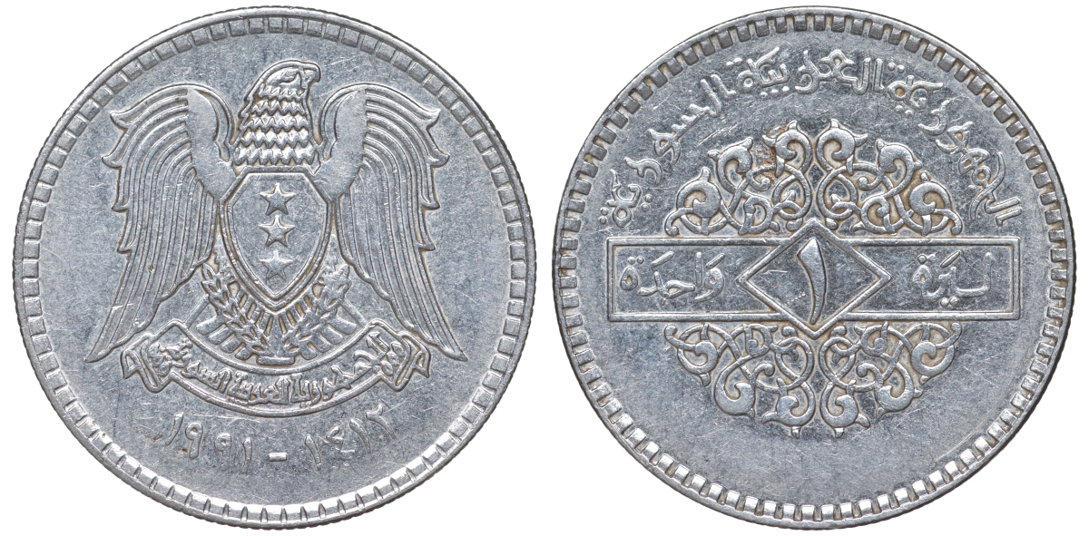 Сирия 1 фунт 1991 AH 1412 KM 120.2 сталь 4513-421
