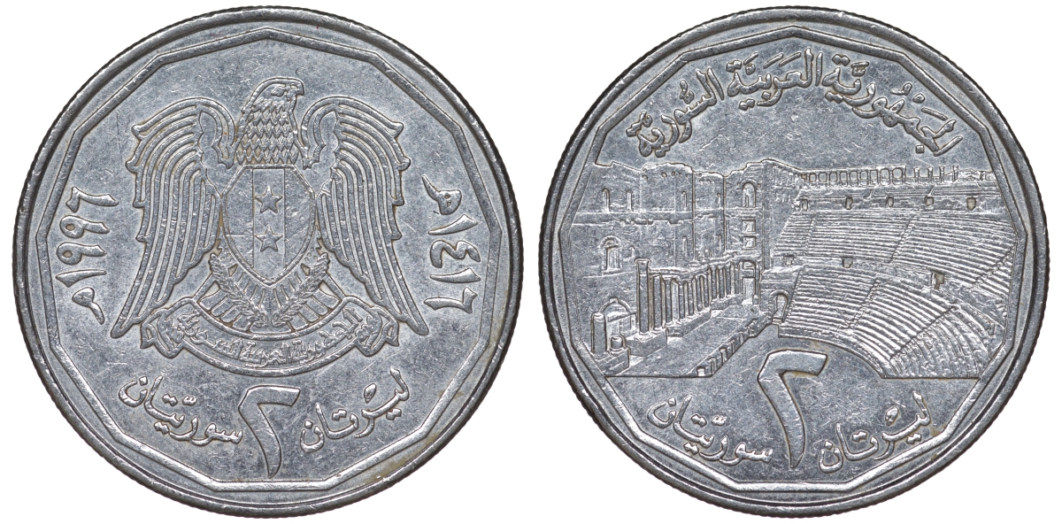 Сирия 2 фунта 1996 AH 1416, пальмира KM 125 сталь 4145-1243