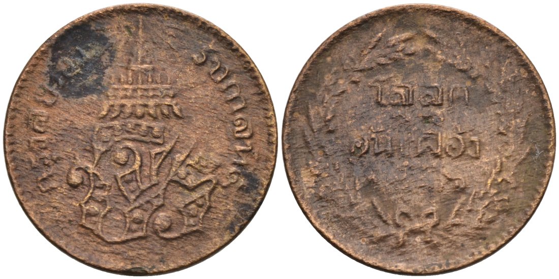 Таиланд 1/2 атт 1874 CS1236, король Рама V (1868-1910) KM 17 медь 92-532