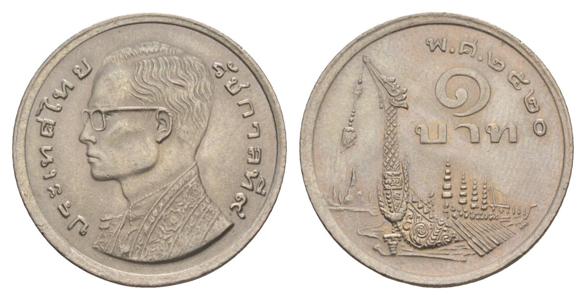 Таиланд 1 бат 1977 ВЕ 2520, король Рама IX, древний корабль Y?110 медно-никель UNC 4631-1036