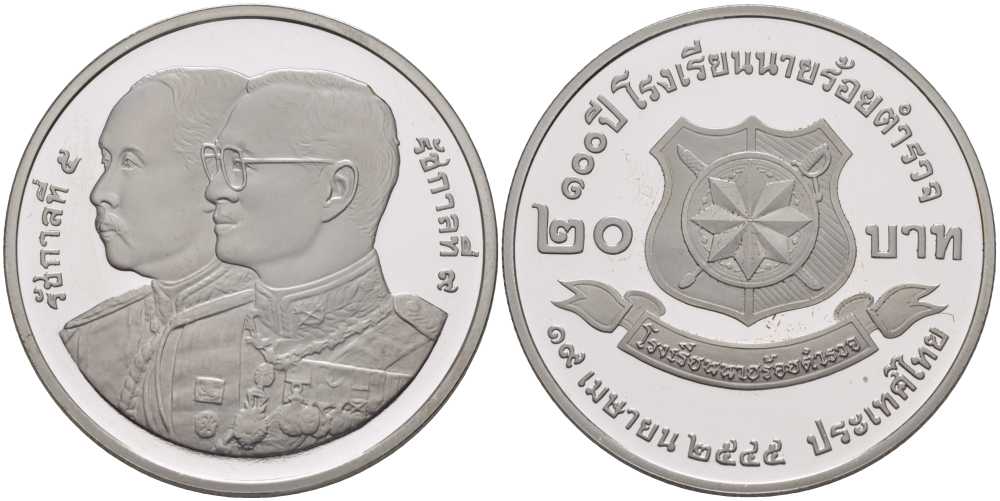 ТАИЛАНД 20 БАТ 2002 100 ЛЕТ НАЦИОНАЛЬНОЙ ПОЛИЦИИ (19 АПРЕЛЯ 1902), ЭМБЛЕМА ПОЛИЦИИ, МОНЕТА В КАПСУЛЕ, С СЕРТИФИКАТОМ, ТИРАЖ 5000 ЭКЗ. KM 397 медно-никель PROOF 5-4-2-10