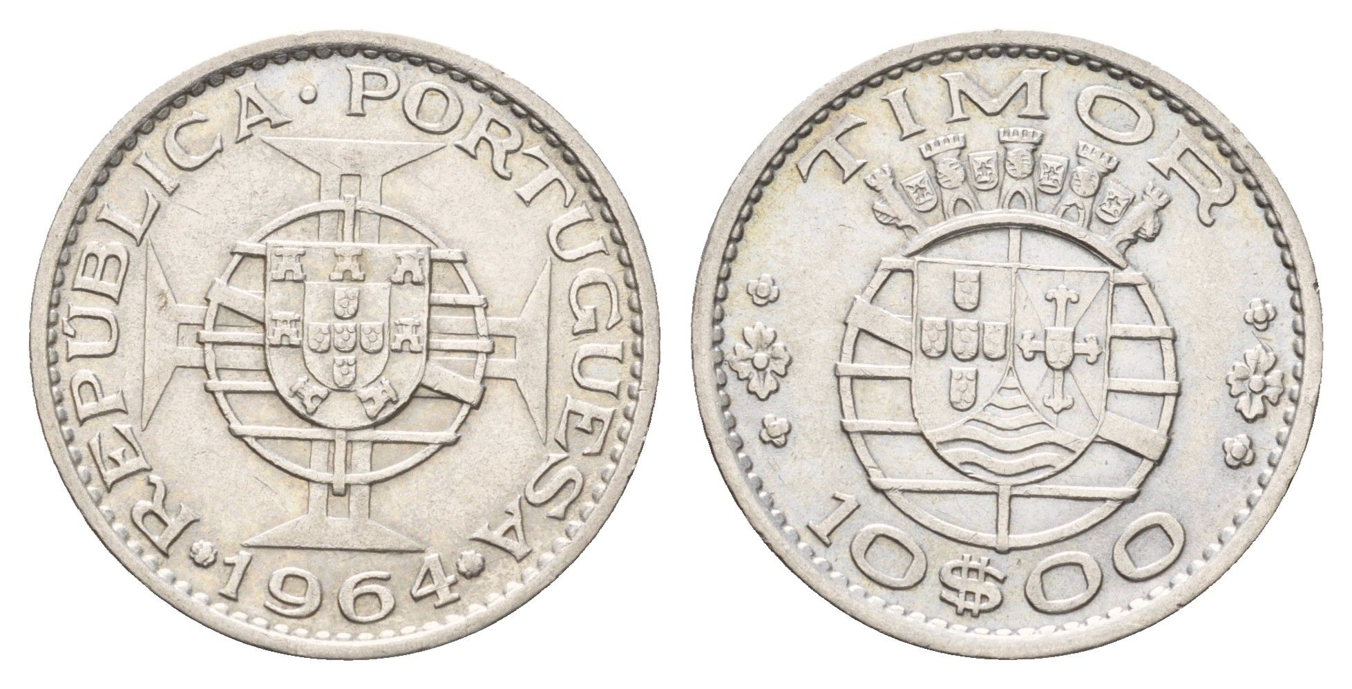 Португальский Тимор 10 эскудо 1964 год-тип KM 16 серебро 4671-833