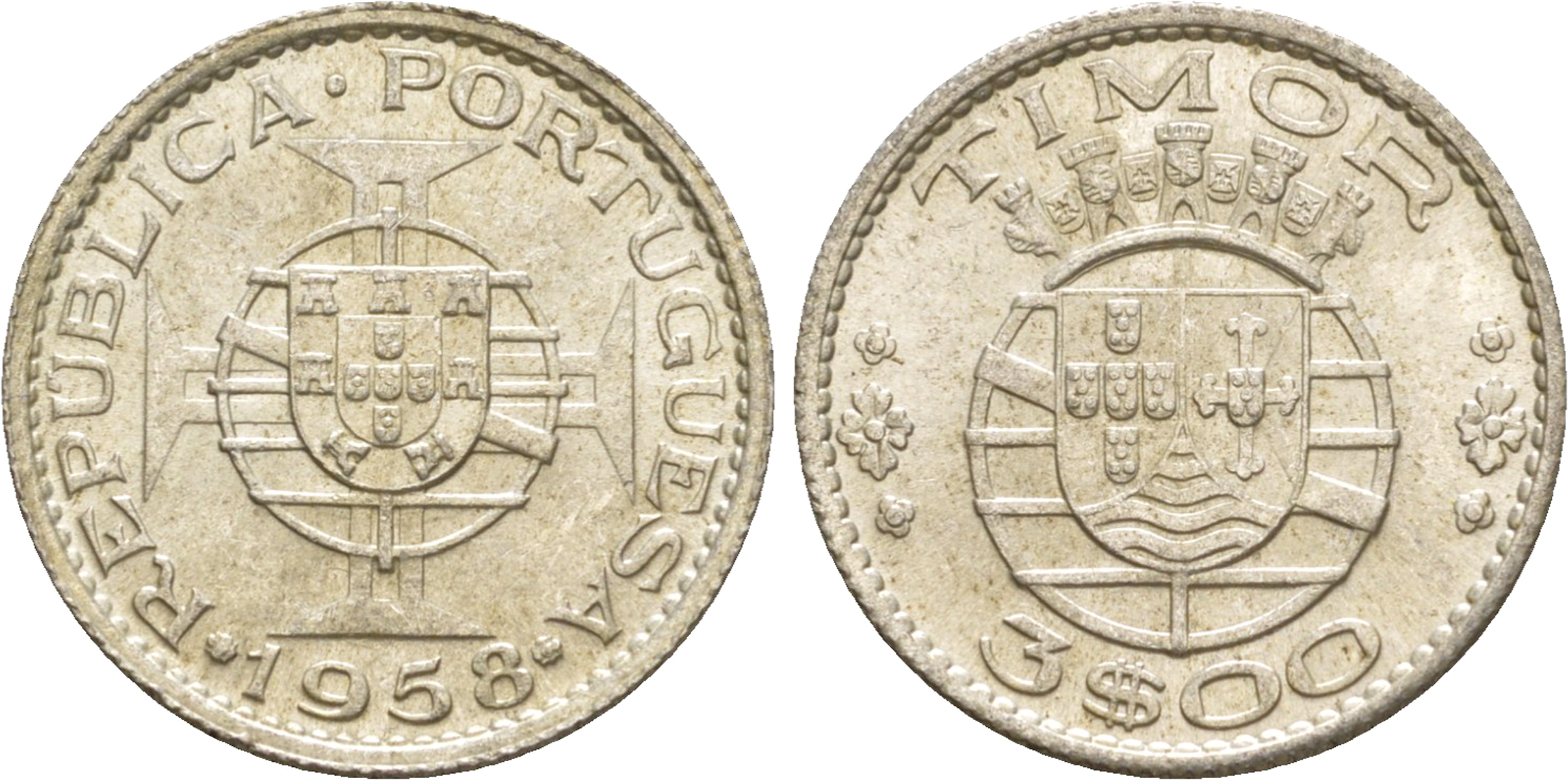 Португальский Тимор 3 эскудо 1958 KM 14 серебро aUNC 4635-846