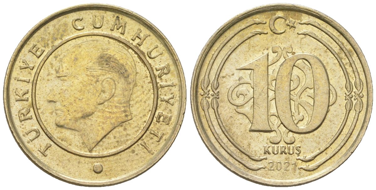 Турция 10 курушей 2021 KM 1241 медь цинк никель 4124-1169