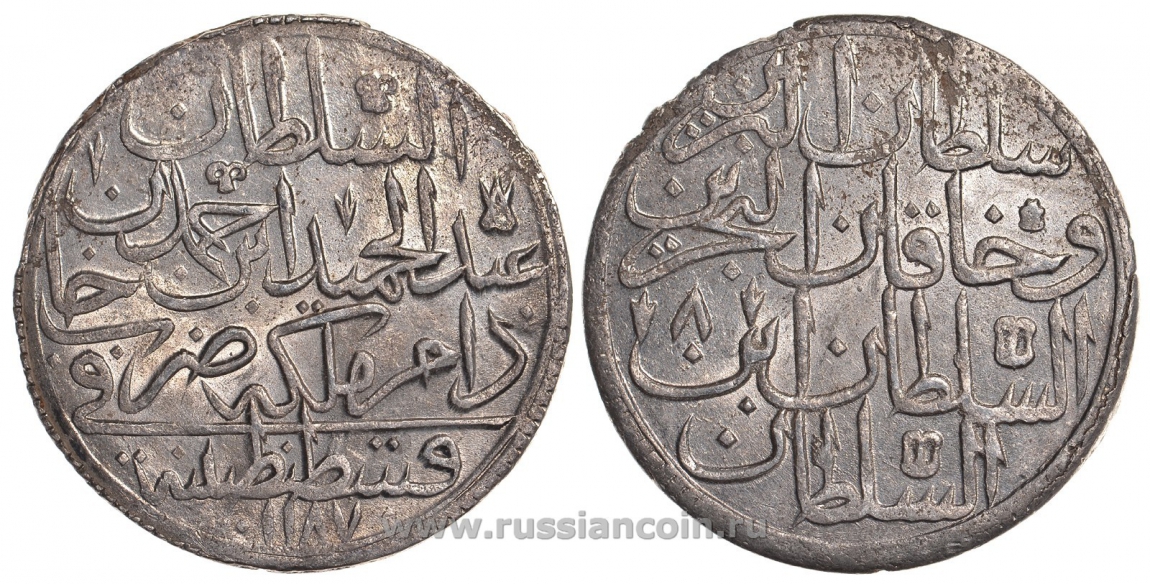 ----Турция 2 золота 1782 1187 год, 8 год, Абдул Хамид KM 401, Dav.331 серебро 00-1067-2-44