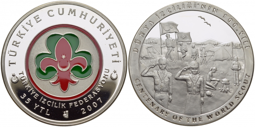 ----Турция 35 новых лир 2007 100 лет скаутскому движению, эмаль KM NEW серебро PROOF 1081-3-62