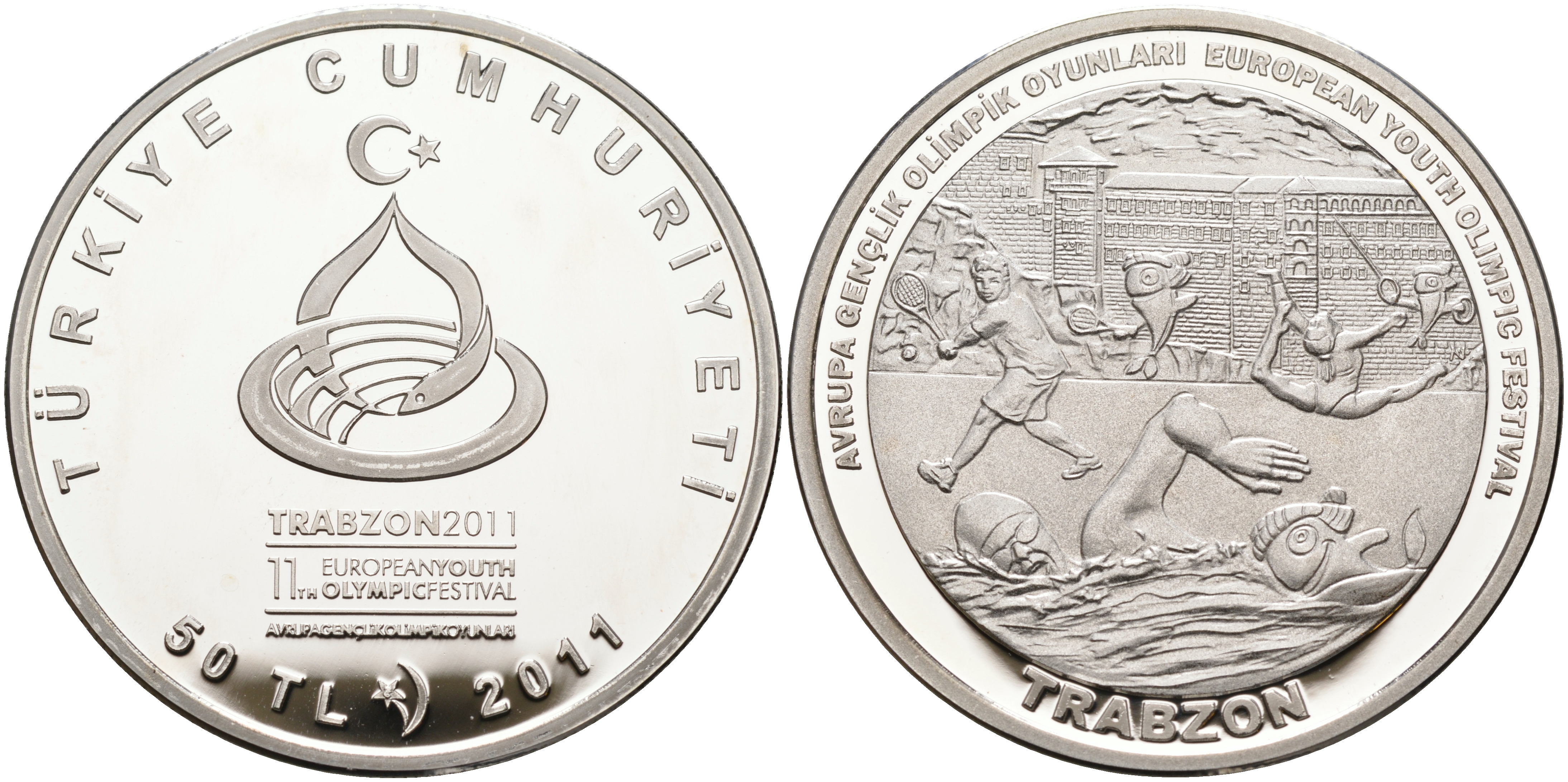 Турция 50 лир 2011 Европейский молодежный олимпийский фестиваль 2011 - Трабзон, плавание серебро PROOF 11-104-41