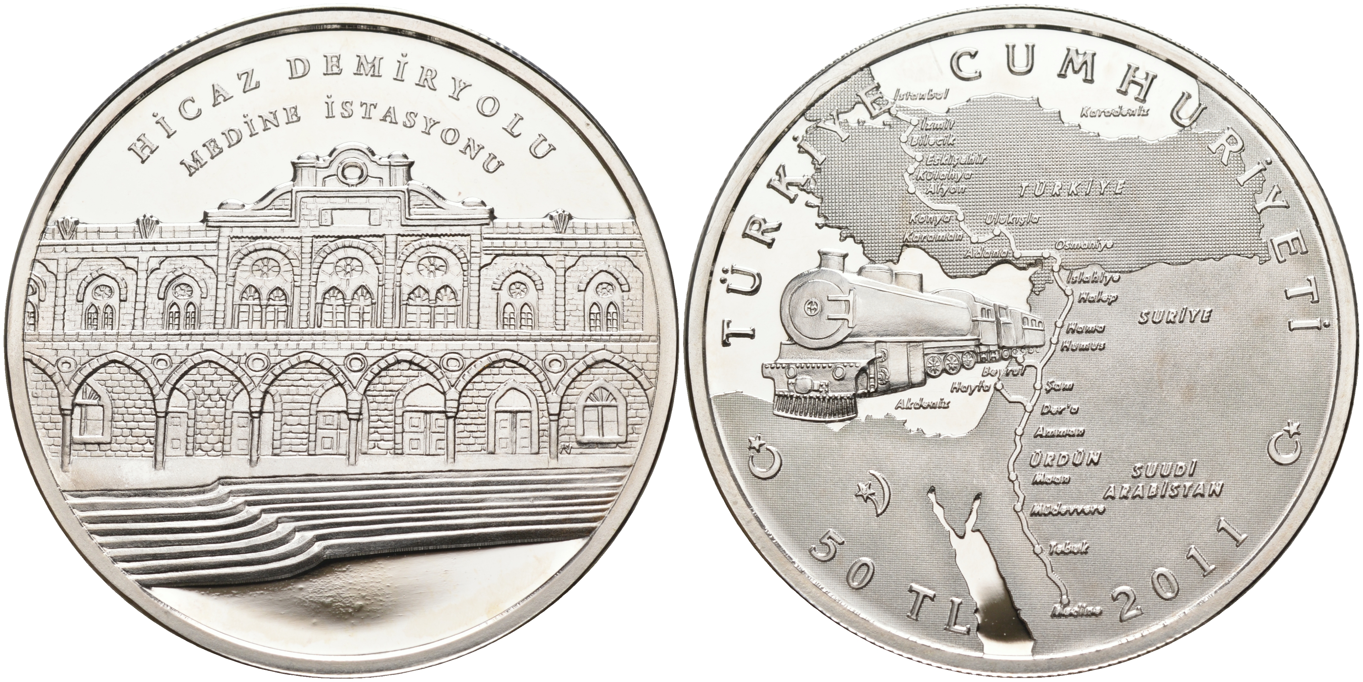 Турция 50 лир 2011 Железная дорога Хиджаз - Медина серебро PROOF 02-104-33