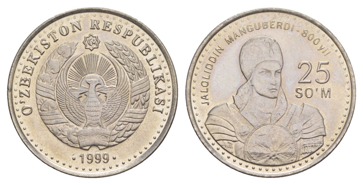 Узбекистан 25 сумов 1999 800 лет со дня рождения Жалолиддина Мангуберды KM 11 сталь плакированная никелем UNC 4633-925