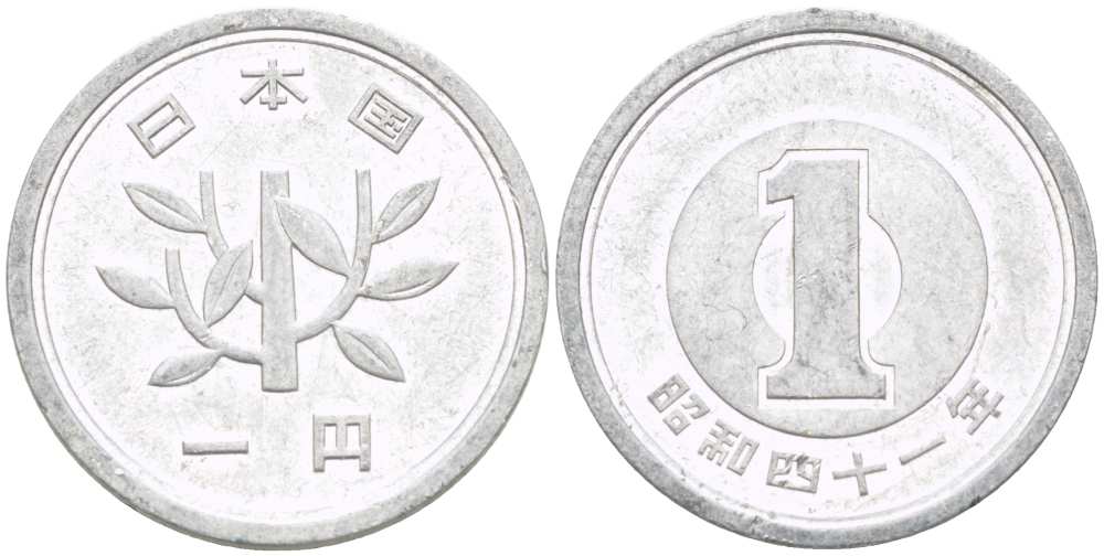 ЯПОНИЯ 1 ЙЕНА 1966 ГОД 41 ИМПЕРАТОР ХИРОШИТО KM 74 алюминий 217-934