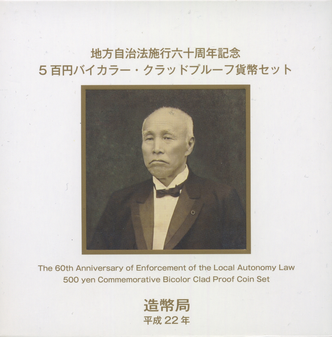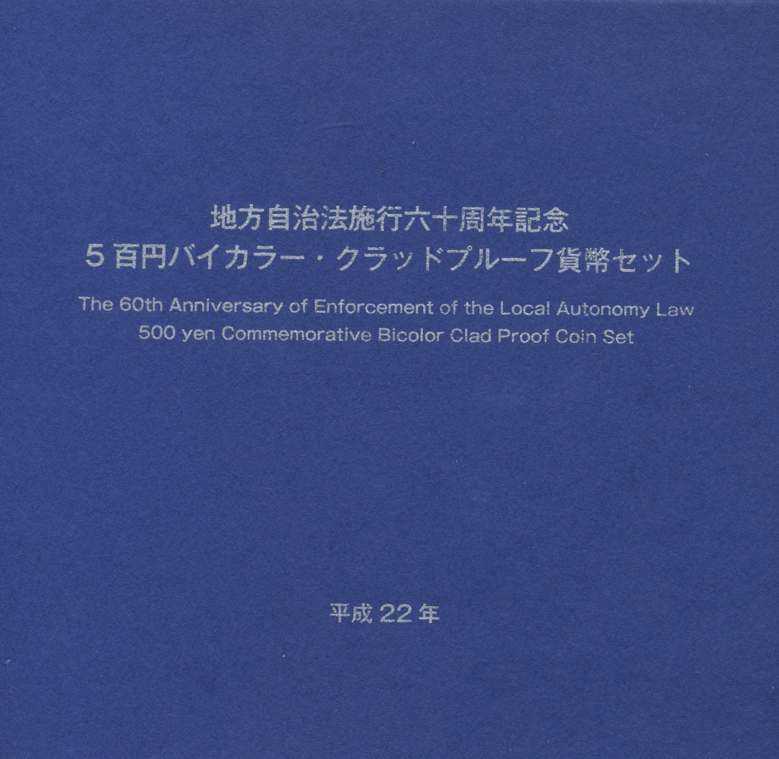 Япония 500 йен 2010 22 год, 60 лет со дня принятия Закона о самоуправлении, в оригинальной коробке KM NEW никель-латунь PROOF 4-3-2-25