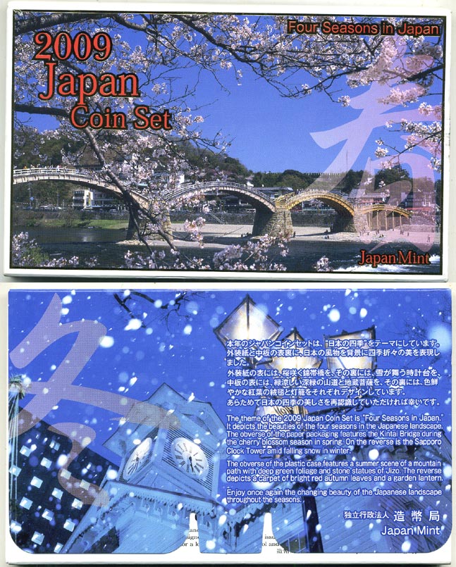 --Япония набор из 6 монет + жетон 2009 официальный набор в пластике и картонной коробке, четыре времени года, JAPAN MINT UNC 1-5-2-30Нидерландская ИндияФранцузский ИндокитайУзбекистанСаудовская АравияСаравакТибетОбъединенные Арабские ЭмиратыКамбоджаБрунейБангладешСтрейтс-СетлментсАфганистанЕдиная КореяКатарМолдавия (Молдова)КиргизияКазахстанГрузияТуркменияАзербайджанТаджикистанИорданияАрменияЛаосКувейтЮжная КореяСеверная КореяКитайЙеменИранИракЛиванИндонезияИндияИзраильГонконгВьетнамБутанБирма (Мьянма)БахрейнТаиландЮжная АравияЯпонияШри-Ланка (Цейлон)ФилиппиныТурцияТиморТайваньМакаоСирияСингапурПакистанОманНепалМонголияМальдивыМалайзияДругие страны