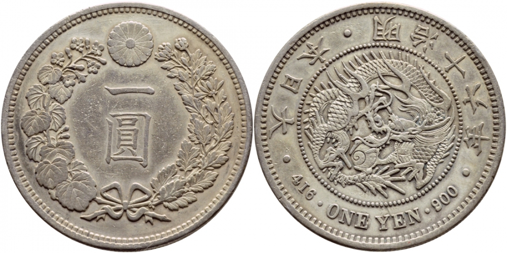 Япония 1 йена 1883 диаметр 38,6 мм., 16 год правления Императора Муцухито (Микадо) KM A25.2 серебро 00-1067-7-22