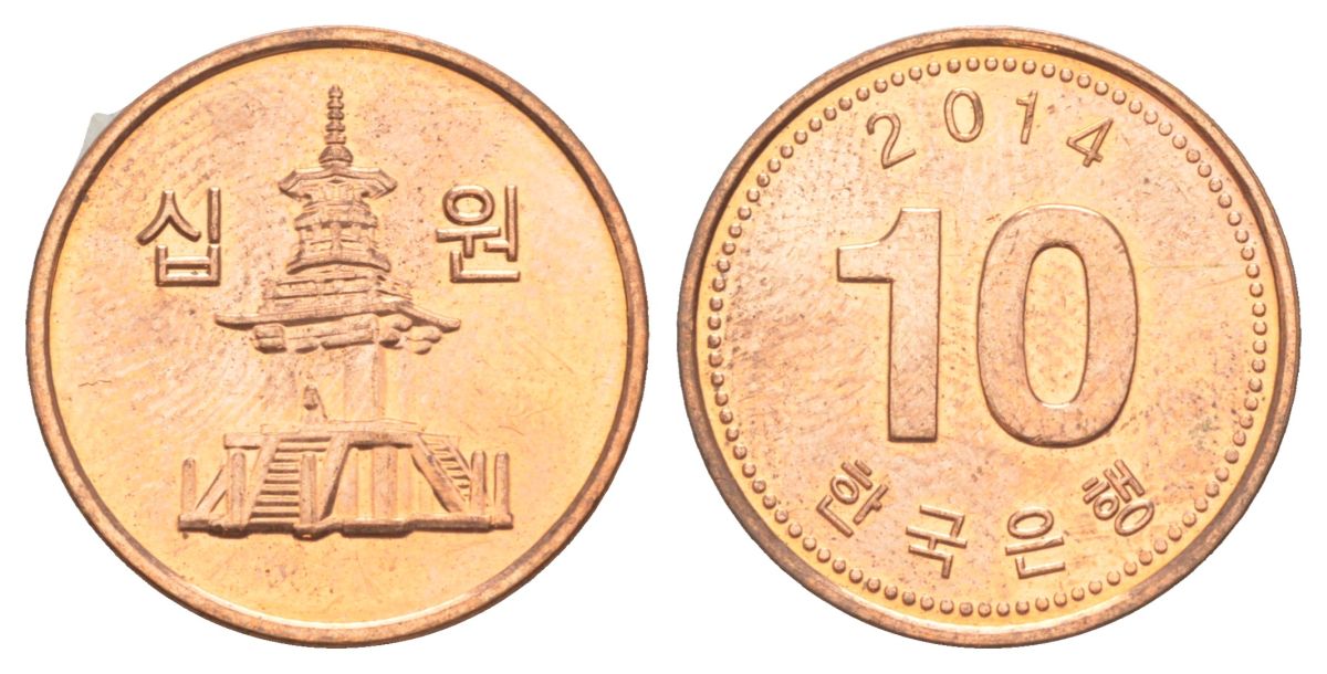 ----Южная Корея 10 вон 2014 KM 103 алюминий плакированный медью 4627-1256