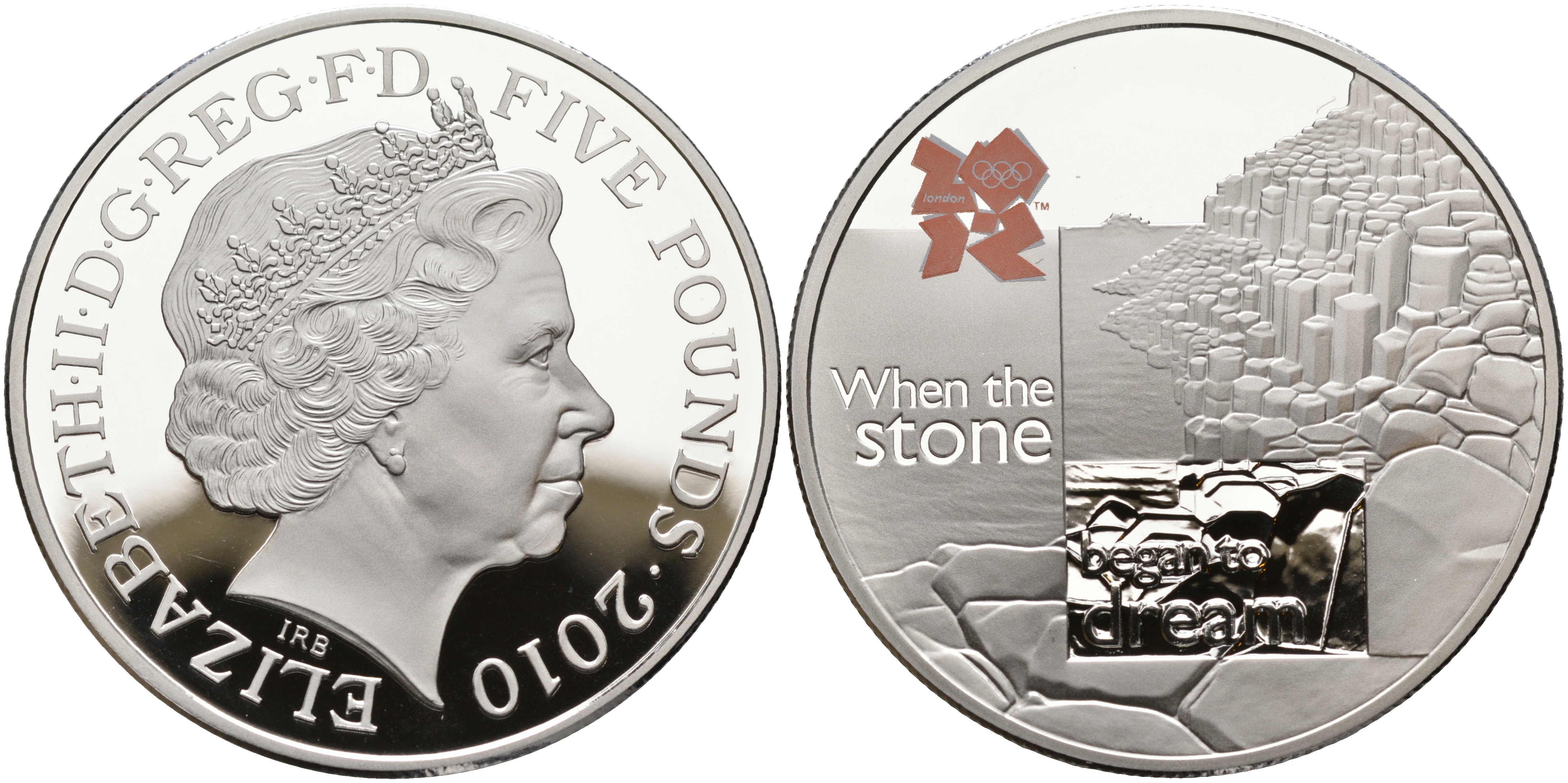 Англия 5 фунтов 2010 Олимпийские игры в Лондоне, когда камень начинает мечтать, эмаль KM NEW серебро PROOF 02-203-35