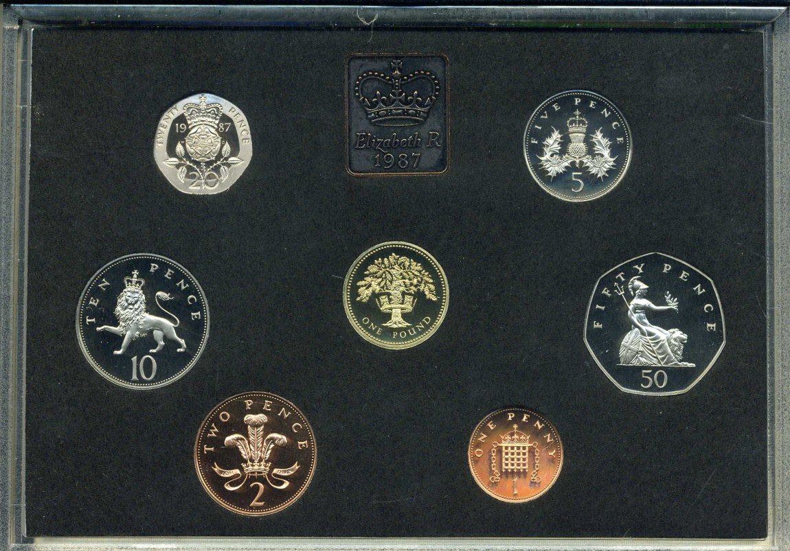 Великобритания набор из 7 монет 1987 в пластике, с сертификатом, в оригинальной коробке Spink PS 39 PROOF 5-6-4-5