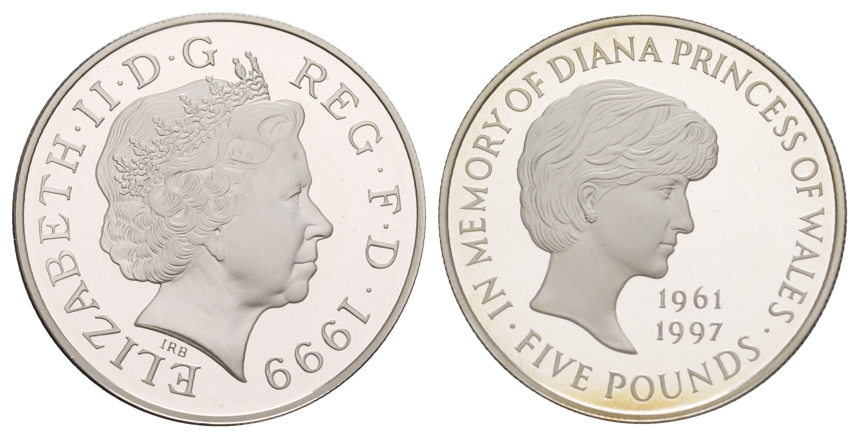 Великобритания 5 фунтов 1999 Принцесса Диана, в оригинальной упаковке, с сертификатом подлинности KM 997a, Spink L6 серебро PROOF 4-3-1-24