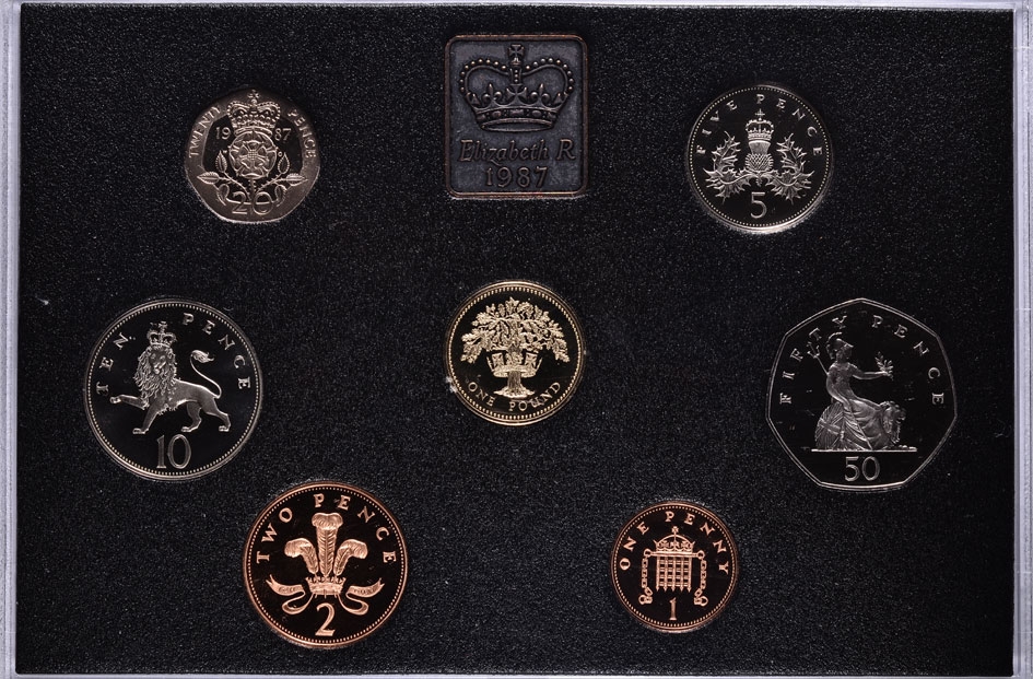 Англия набор из 7 монет + жетон монетного двора 1987 в оригинальной пластиковой упаковке PROOF 7-5-4-10