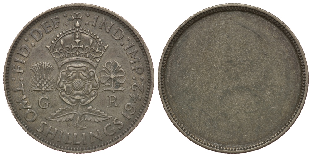 Великобритания 2 шиллинга (флорин) 1942 пробная / проба, односторонний чекан, Георг VI (1936-1952) серебро 00-812-01