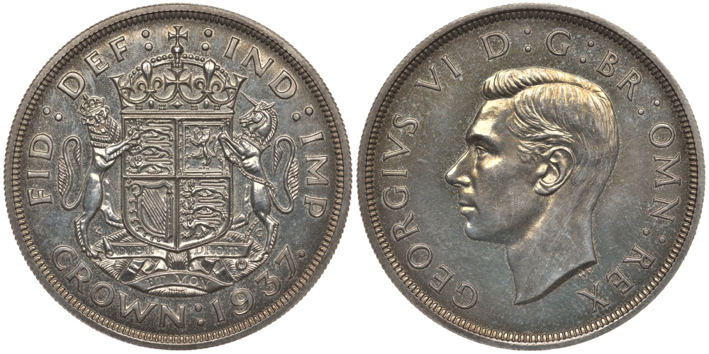 Англия 1 крона 1937 Георг VI (1936-1952), KM 857, Spink 4079 серебро PROOF 00-822-80