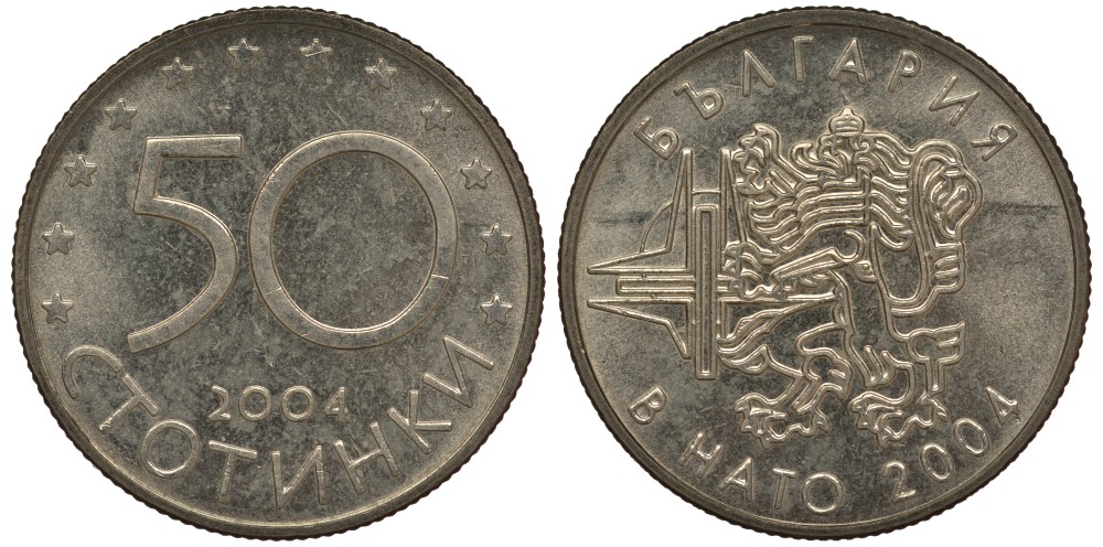 Болгария 50 стотинок 2004 членство Болгарии в НАТО KM 272 медно-никель UNC M1-19