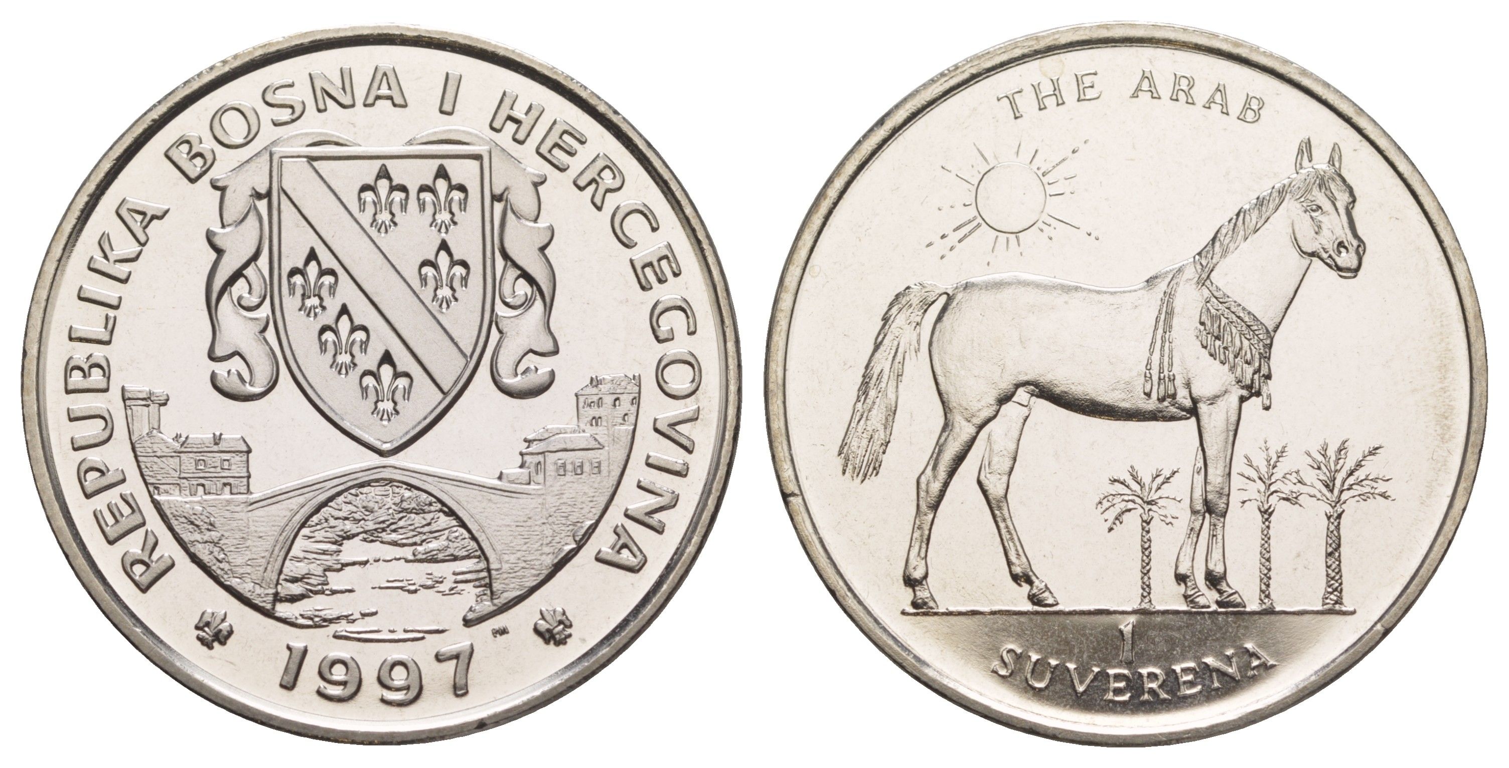 Босния и Герцеговина 1 суверен 1997 Лошади - Арабская лошадь KM 93 медно-никель BU 1082-9-75