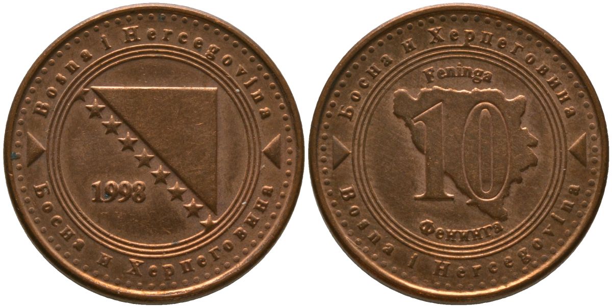 Босния и Герцеговина 10 фенингов 1998 KM 115 сталь плакированная медью 4549-243