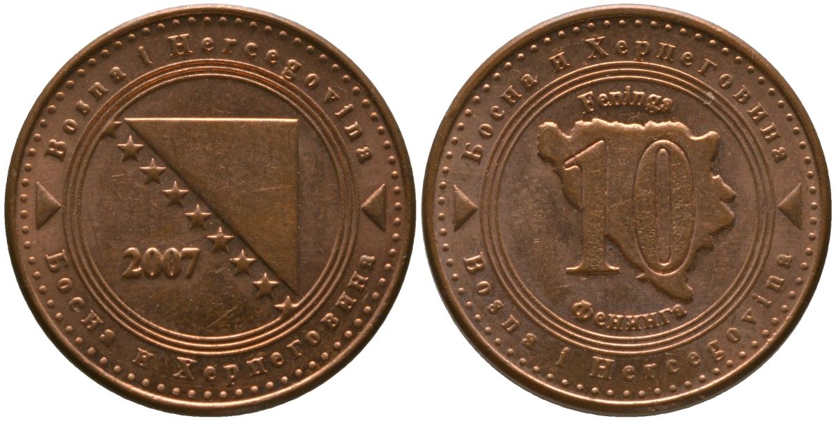 -----Босния и Герцеговина 10 фенингов 2007 KM 115 сталь плакированная медью 4549-325