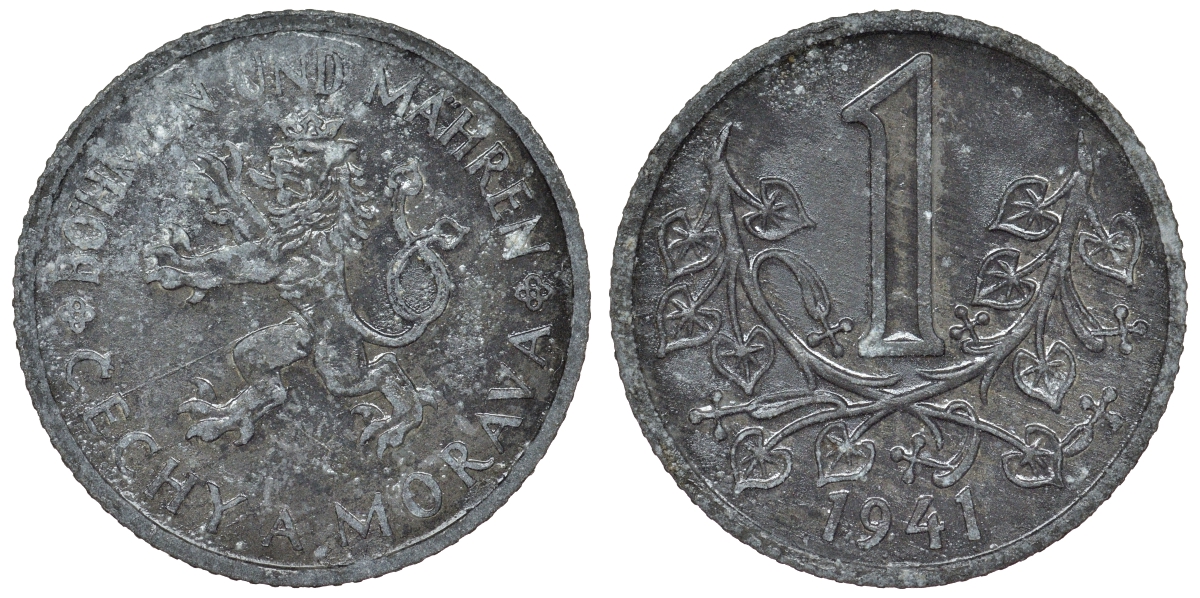 Богемия и Моравия 1 крона 1941 германский протекторат KM 4 цинк 4121-123