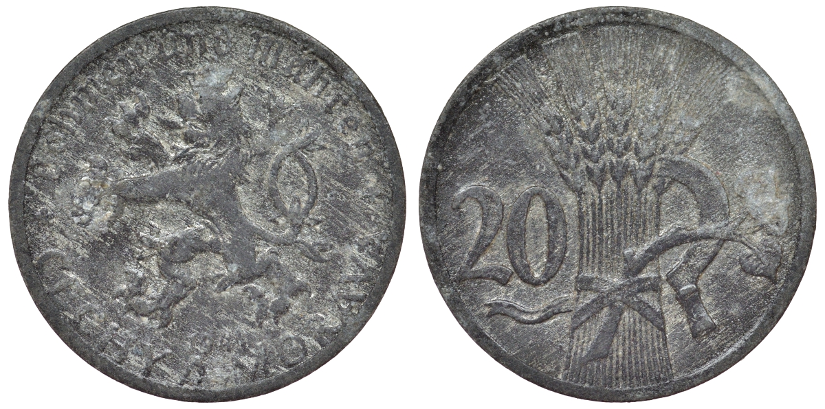 Богемия и Моравия 20 геллеров 1941 германский протекторат KM 2 цинк 4119-941