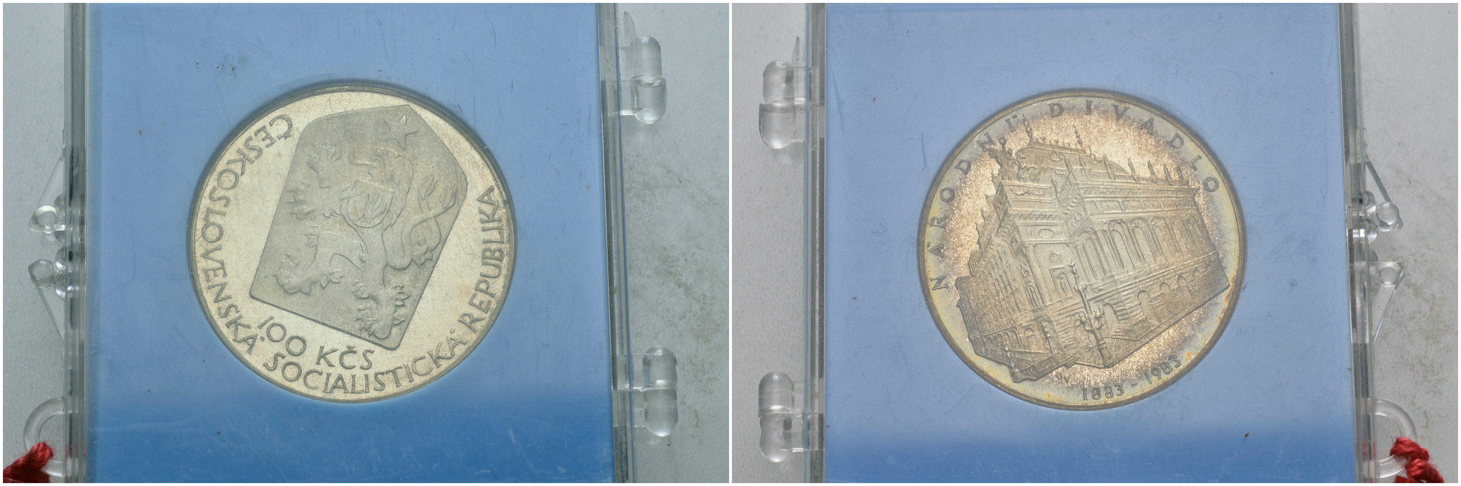 Чехословакия 100 крон 1983 100 лет национального театра в Праге, под оригинальной пломбой KM 111 серебро PROOF 1065-2-33