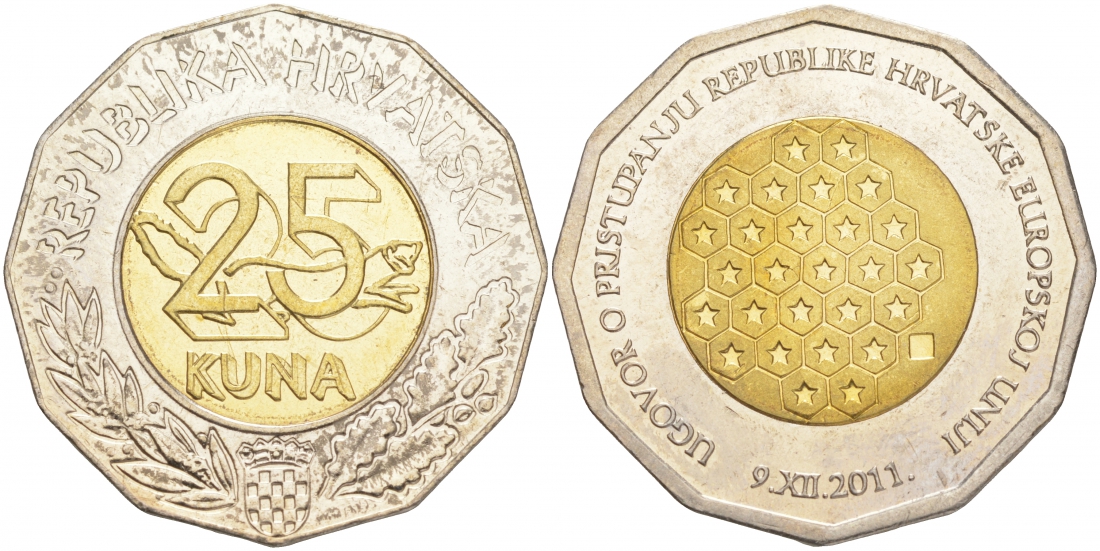 Хорватия 25 кун 2011 подписание договора о вступлении Хорватии в Евросоюз KM 98 биметалл UNC 4149-1013