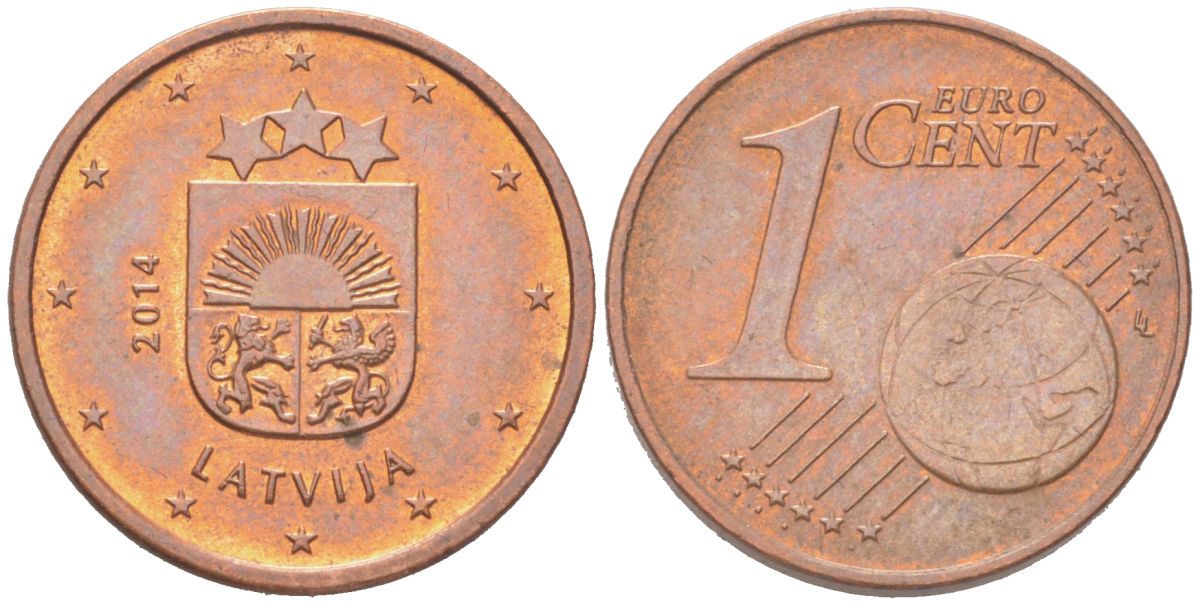 Латвия 1 евроцент 2014 KM 150 сталь плакированная медью 4614-663